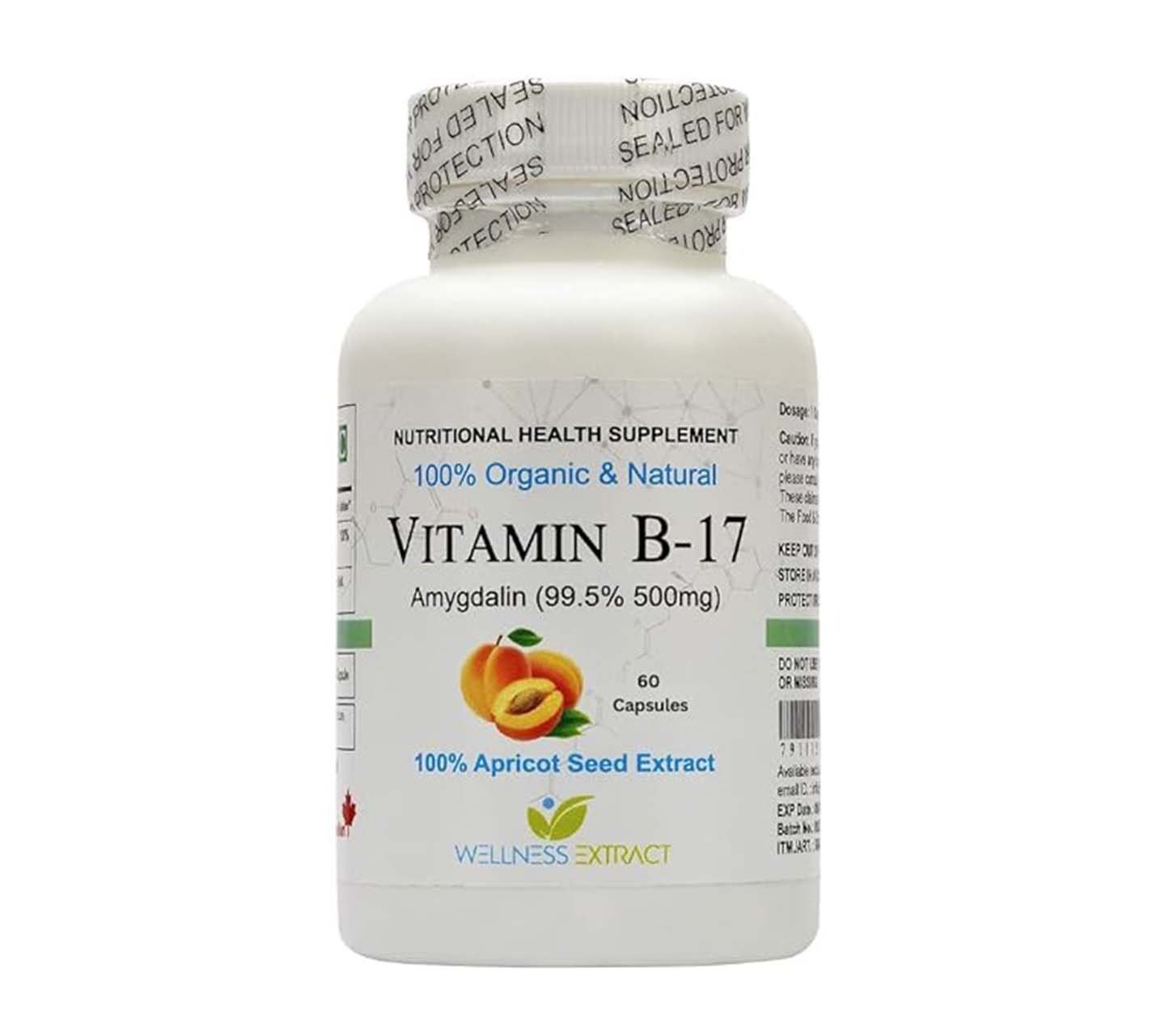 Asterveda Vitamin B17 Amygdalin 99.5% Apricot Extract Organic Natural -60 Capsules